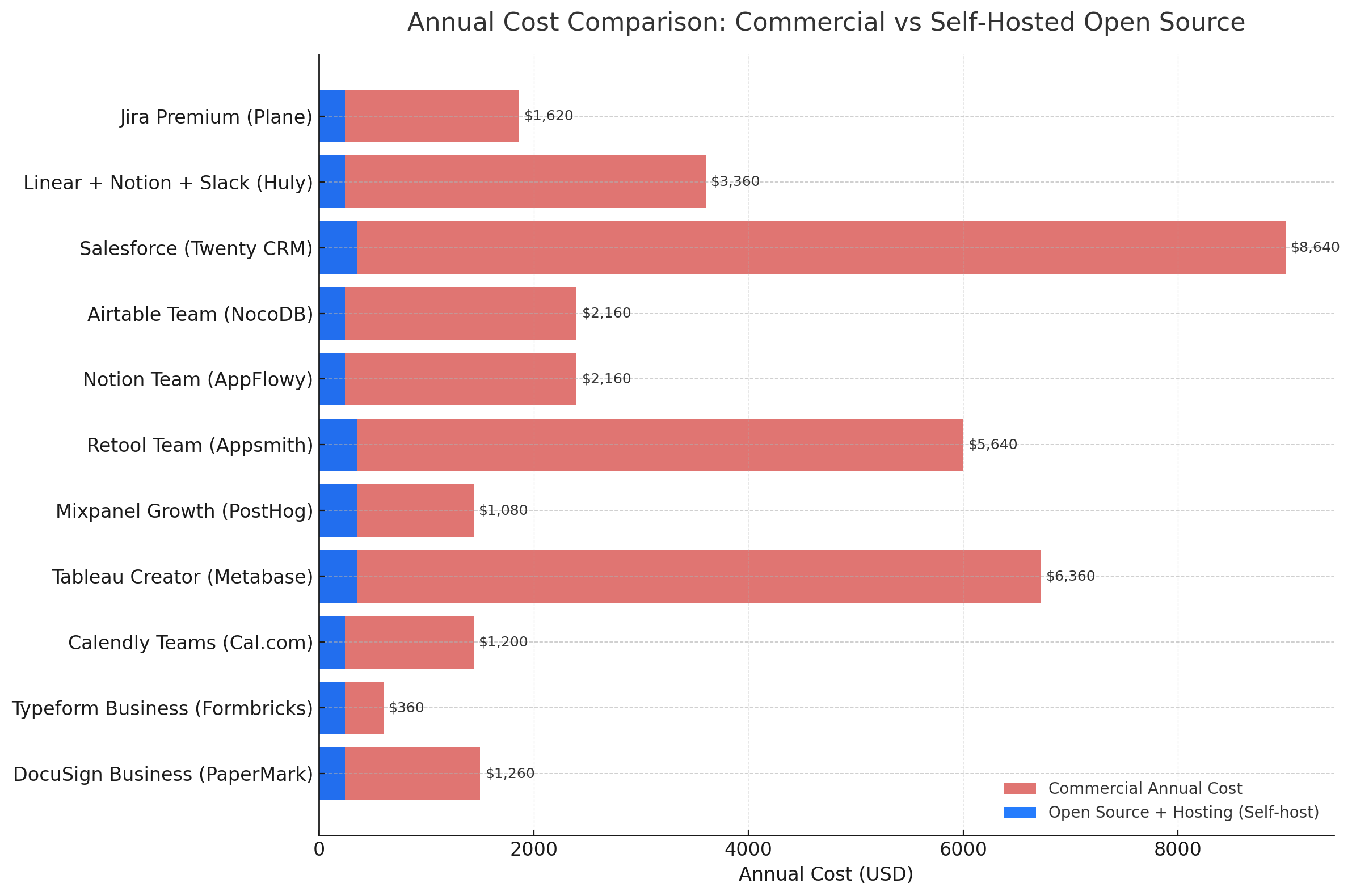 Open source isn’t just cheaper—it’s strategic leverage. Swapping proprietary SaaS for the stack above saves cash while boosting ownership, security, and customization.