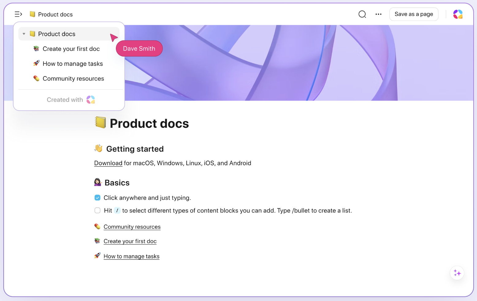 - Rich-text docs and knowledge base